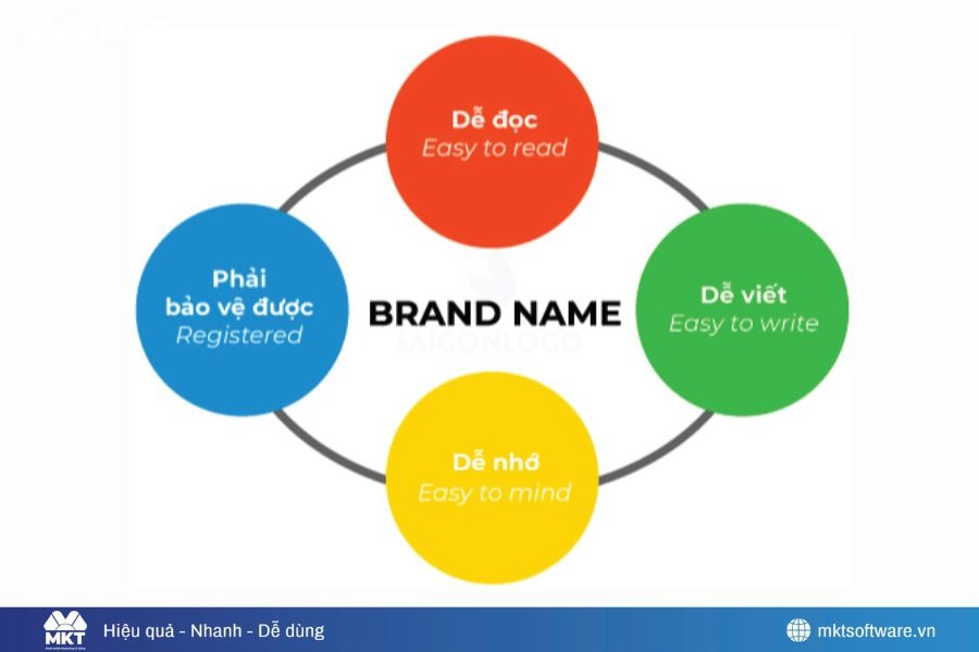 Một cái tên chiến lược phải thỏa mãn ba tiêu chí: Phù hợp với phân khúc thị trường, có khả năng mở rộng, và dễ dàng bảo vệ pháp lý. Tên thương hiệu nên phản ánh giá trị cốt lõi và chiến lược của doanh nghiệp. Ví dụ: Phần mềm Marketing 0 đồng.