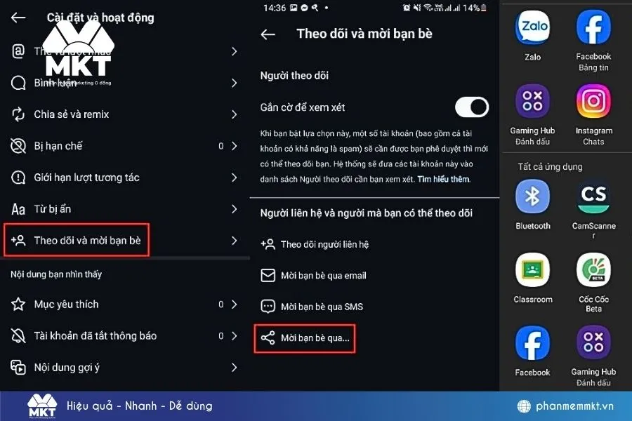 - Tại giao diện trang cá nhân, nhấn biểu tượng dấu ba gạch ở góc trên cùng bên phải -> chọn "Theo dõi và mời bạn bè" (Follow and Invite Friends).