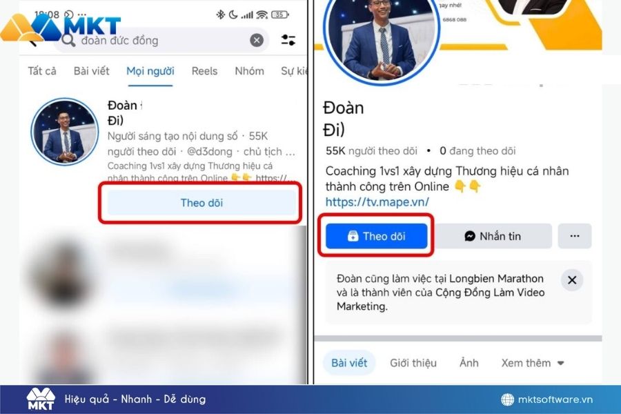 Bước 1: Truy cập vào trang cá nhân của người mà bạn muốn kết bạn và nhấn nút Theo dõi