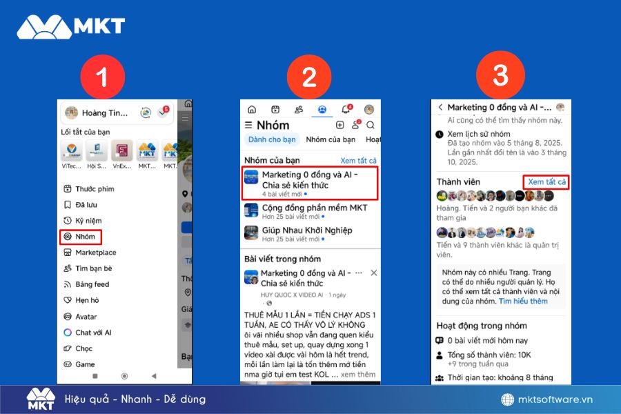 Bước 2: Truy cập danh sách thành viên hoặc bài đăng trong nhóm.