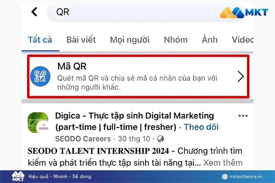Bước 2: Nhập “QR” trên thanh tìm kiếm Facebook.