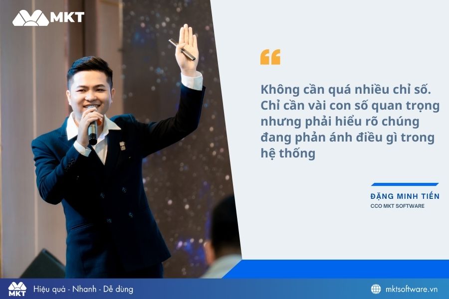 Từ kinh nghiệm làm việc với nhiều đội ngũ kinh doanh và marketing, anh Tiến cho rằng doanh nghiệp không nhất thiết phải theo dõi quá nhiều báo cáo phức tạp. Điều quan trọng hơn là xác định được một vài chỉ số thực sự phản ánh “nhịp thở” của hệ thống vận hành.