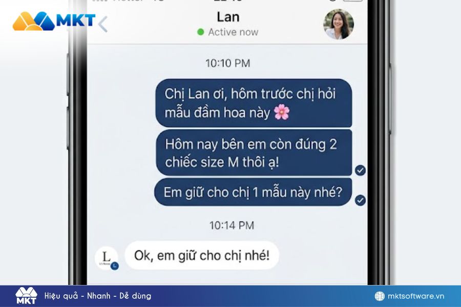 - Cách cá nhân hóa hiệu quả: “Chị Lan ơi, hôm trước chị hỏi mẫu đầm hoa này 🌸