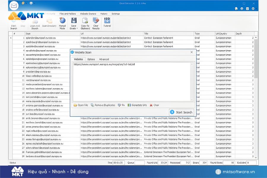 Phần mềm nổi bật với tốc độ thu thập nhanh và khả năng tìm kiếm linh hoạt theo URL hoặc từ khóa. Tuy nhiên, dữ liệu thu về mang tính đại trà, cần được lọc lại để đảm bảo đúng tệp khách hàng tiềm năng.