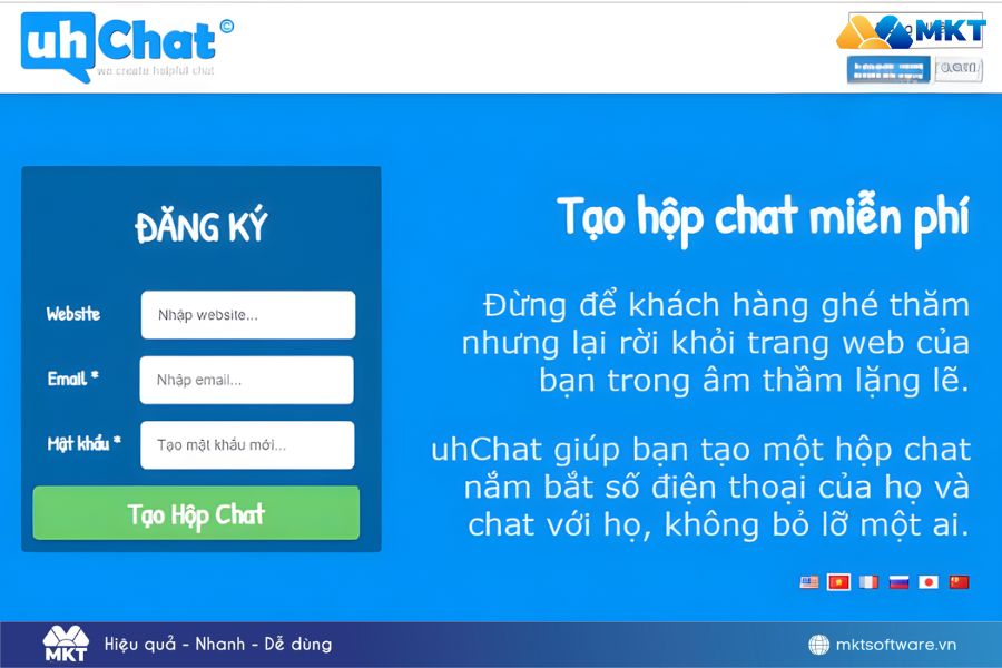 UhChat là công cụ chatbot hỗ trợ thu thập số điện thoại khách hàng khi họ truy cập website. Đồng thời, phần mềm còn giúp doanh nghiệp tương tác và chăm sóc khách hàng trực tiếp.