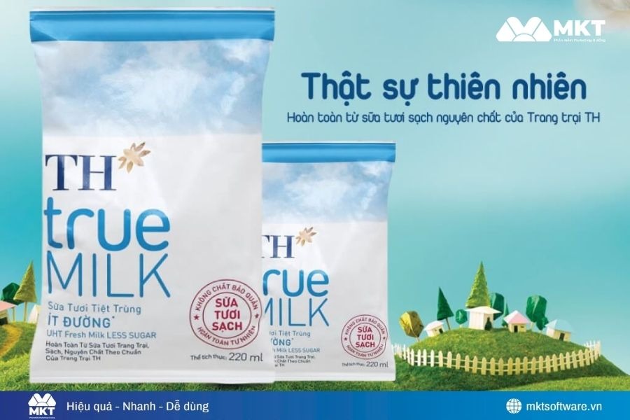 Ví dụ: TH True Milk định vị mình là sản phẩm sữa tươi sạch nguyên chất hoàn toàn từ thiên nhiên, với thông điệp “Thật sự thiên nhiên”.