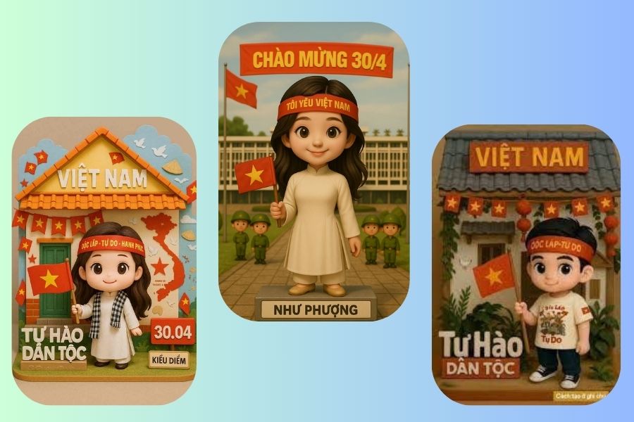 Bên cạnh những banner trang trọng, các hình ảnh giải phóng miền Nam 30/4 chibi dễ thương cũng được ưa chuộng, đặc biệt trong giới trẻ và truyền thông mạng xã hội.