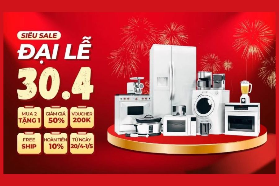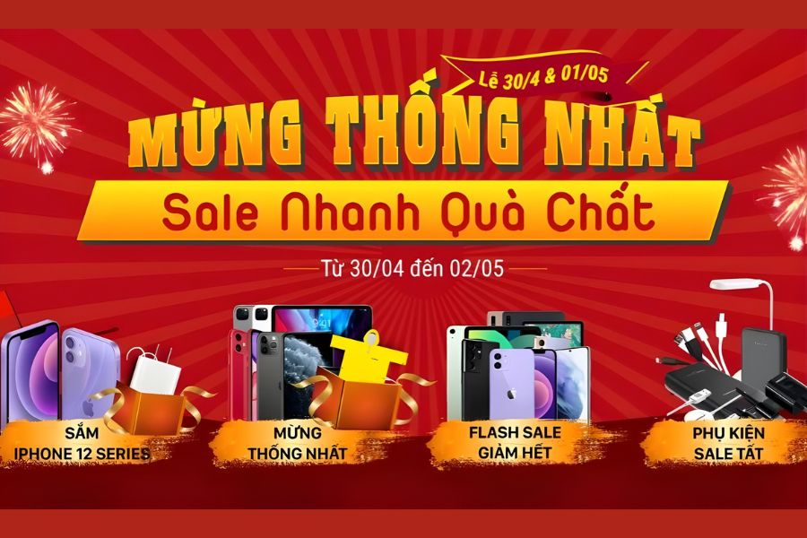 Dịp lễ 30/4 là thời điểm vàng để doanh nghiệp triển khai các chiến dịch marketing với banner khuyến mãi thu hút và ấn tượng. Và dưới đây là các banner bán hàng phổ biến: