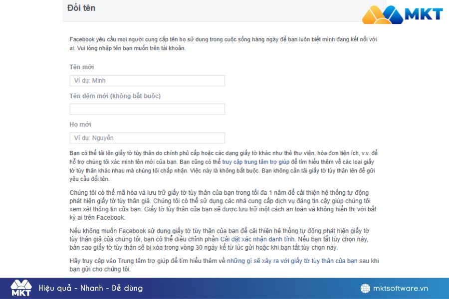 - Tuân thủ chính sách đặt tên: Tên mới phải phù hợp với tiêu chuẩn cộng đồng của Facebook, tránh ký tự đặc biệt hoặc nội dung không hợp lệ.