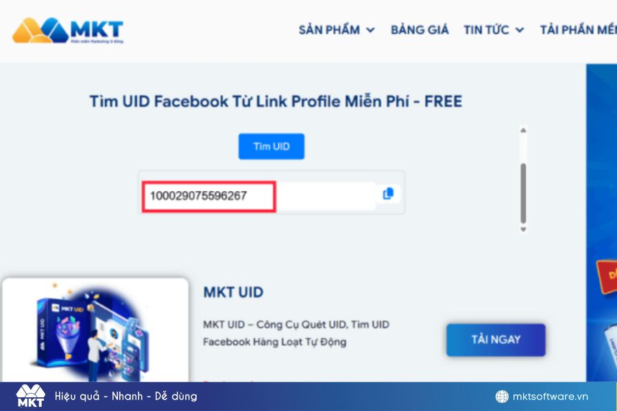 Khi cần xử lý số lượng lớn dữ liệu, việc sử dụng tool chuyên dụng là cách lấy UID của Facebook giúp tiết kiệm thời gian và nâng cao hiệu suất. Các phần mềm như MKT UID hỗ trợ chuyển đổi hàng loạt link Facebook sang UID một cách tự động, chính xác và dễ thao tác.
