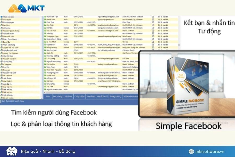 - Hỗ trợ tìm kiếm khách hàng tiềm năng từ group, fanpage và bạn bè.