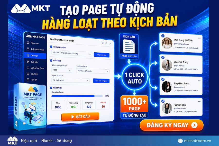 Cách xây Page làm Affiliate Shopee, Lazada, TikTok,… hiệu quả không chỉ nằm ở việc đăng bài mà còn ở chiến lược nội dung và hệ thống vận hành. Khi bạn kết hợp đúng phương pháp cùng các công cụ như MKT Page, MKT Viral và MKT Affiliate, việc triển khai sẽ trở nên dễ dàng và tối ưu hơn rất nhiều. Hy vọng bài viết đã giúp bạn hiểu rõ cách xây Page làm tiếp thị liên kết và có thể áp dụng ngay để tạo ra thu nhập bền vững.